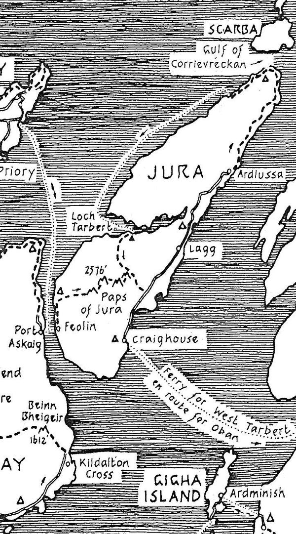 I continue to walk the Paps and have totally explored the island. Off the northern tip is the Gulf of Corryvrechan with the third largest whirlpool in the world, overlooking the Island of Scarba. I have camped on the shore and heard the whirlpool grinding around. I have also sailed through the gulf in mild weather, bound for St. Kilda. and kept well away from the whirlpool! The western side of the island is full of raised beaches, upto 100 feet higher than the present sea level and some a 1/4 mile inland. Makes absorbing remote walking and wild camping using driftwood to cook by; idealistic days. I once slept in a housekeepers bed in the lodge at Glen Batrick on the west coast but itched all night from bed bugs!